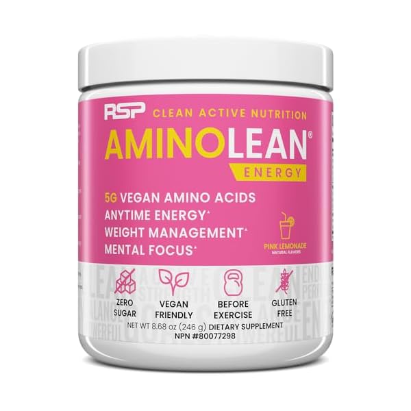 RSP NUTRITION AminoLean Pre Workout Powder, Amino Energy & Weight Management with Vegan BCAA Amino Acids, Natural Caffeine, Preworkout Boost for Men & Women, 30 Serv, Pink Lemonade…